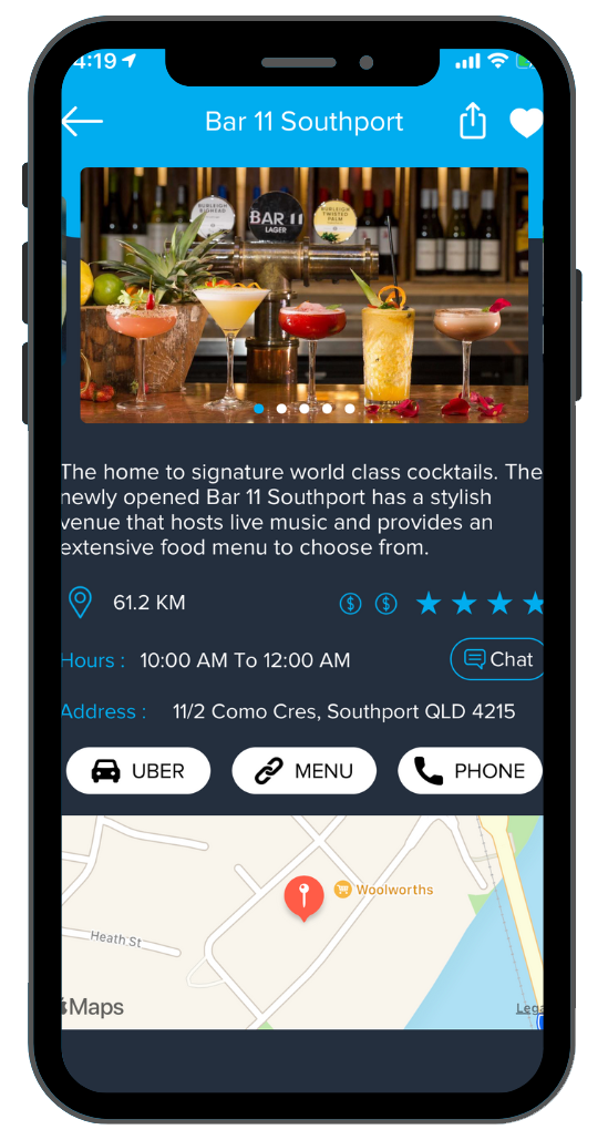 Scroll the different categories to find bars, cafes, activities and other things happening in your area.